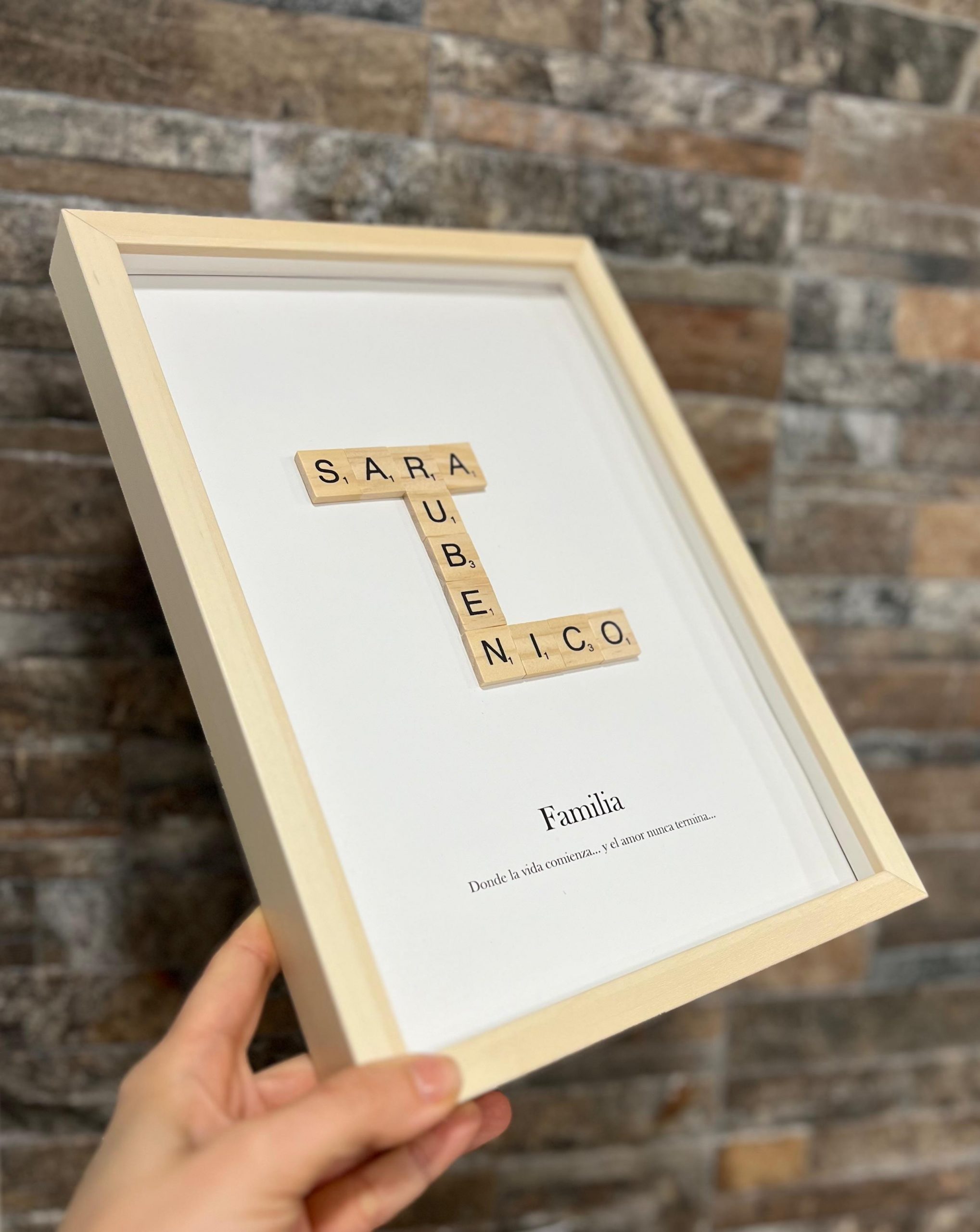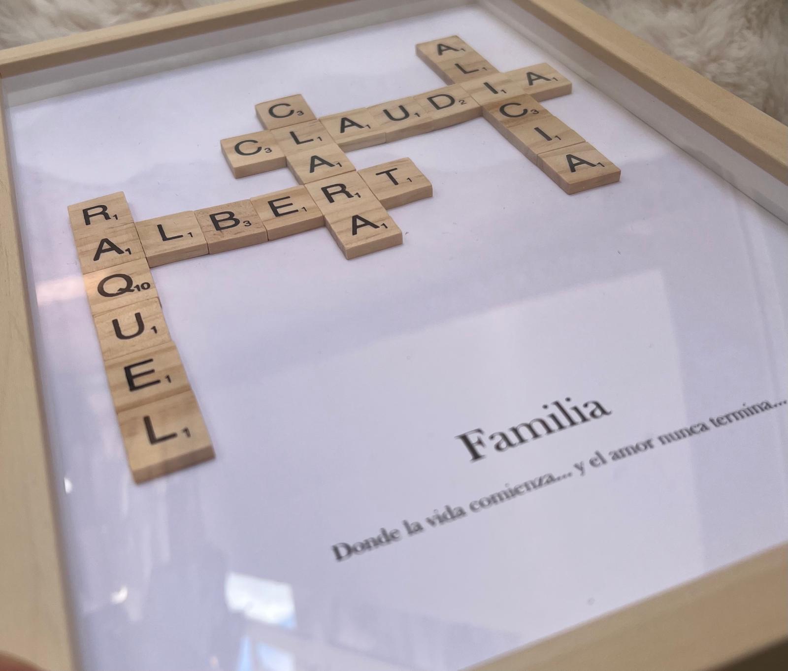 Marco Personalizado con Letras de Madera estilo Scrabble