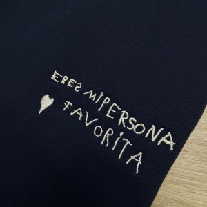Nuestras sudaderas con el dibujo, frase o nombre escrito por tu peque bordado son ideales . ¡Amor a primera vista!